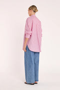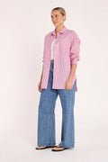 With its effortlessly put-together silhouette, our ‘Emily Shirt’ in Pink Burgundy Stripe is the perfect versatile base!