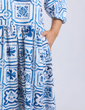 Introducing the dolce tile midi dress: exclusive print , mid length, and relaxed fit . Style it your way for an effortless look that works for any day of the week.