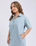 Look no further than the Jenna Stripe Denim Dress for the ultimate in throw over comfort. Featuring a half placket button front and pockets this super cute striped denim dress is the ultimate piece for a casual weekend outing.
